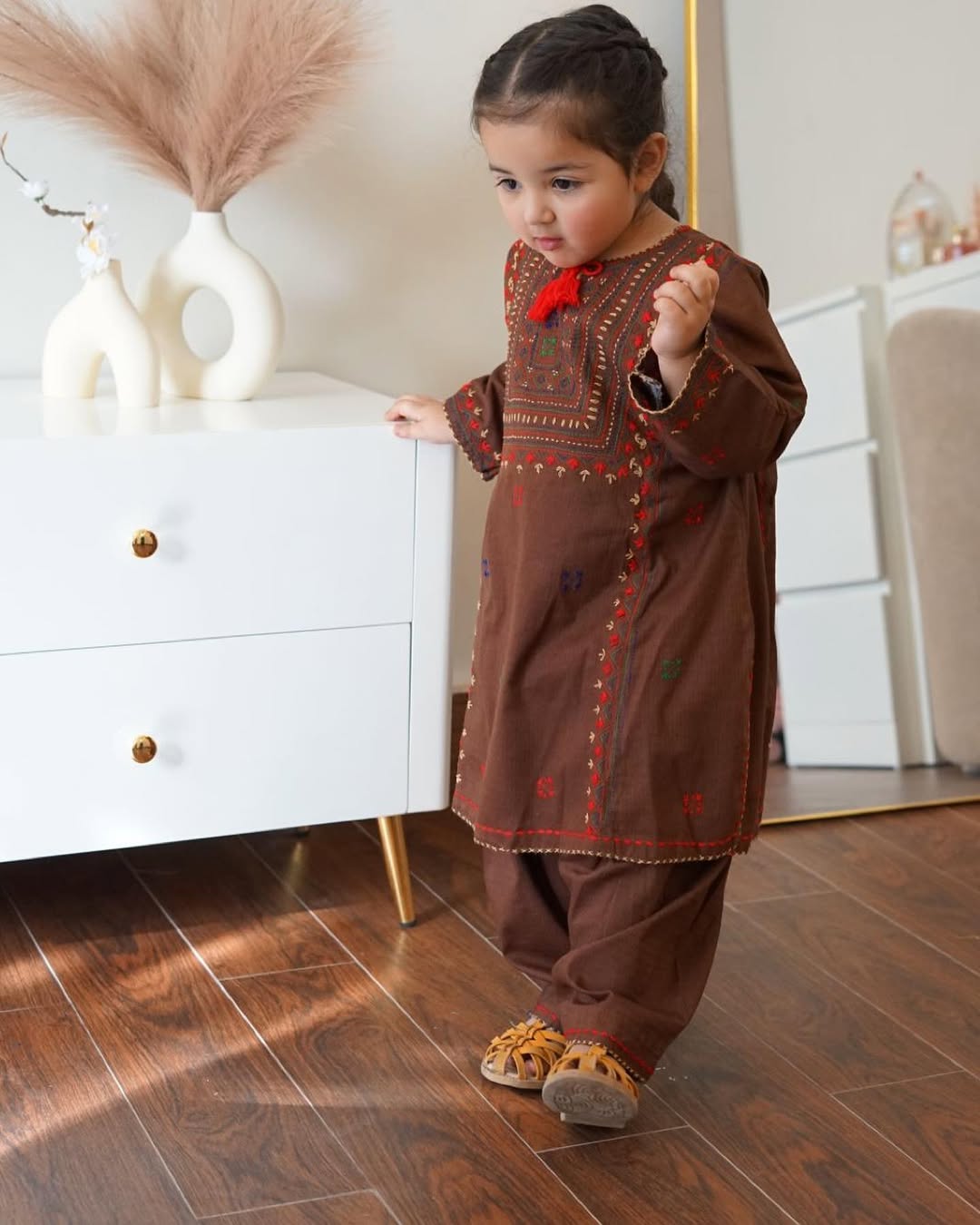 Some outfits feel like love—and Mini Meher is one of them. Crafted from soft, breathable cotton in a comfortable two-piece design, this set blends traditional details with everyday ease. Perfect for little smiles, playful days, and precious family moments ✨
