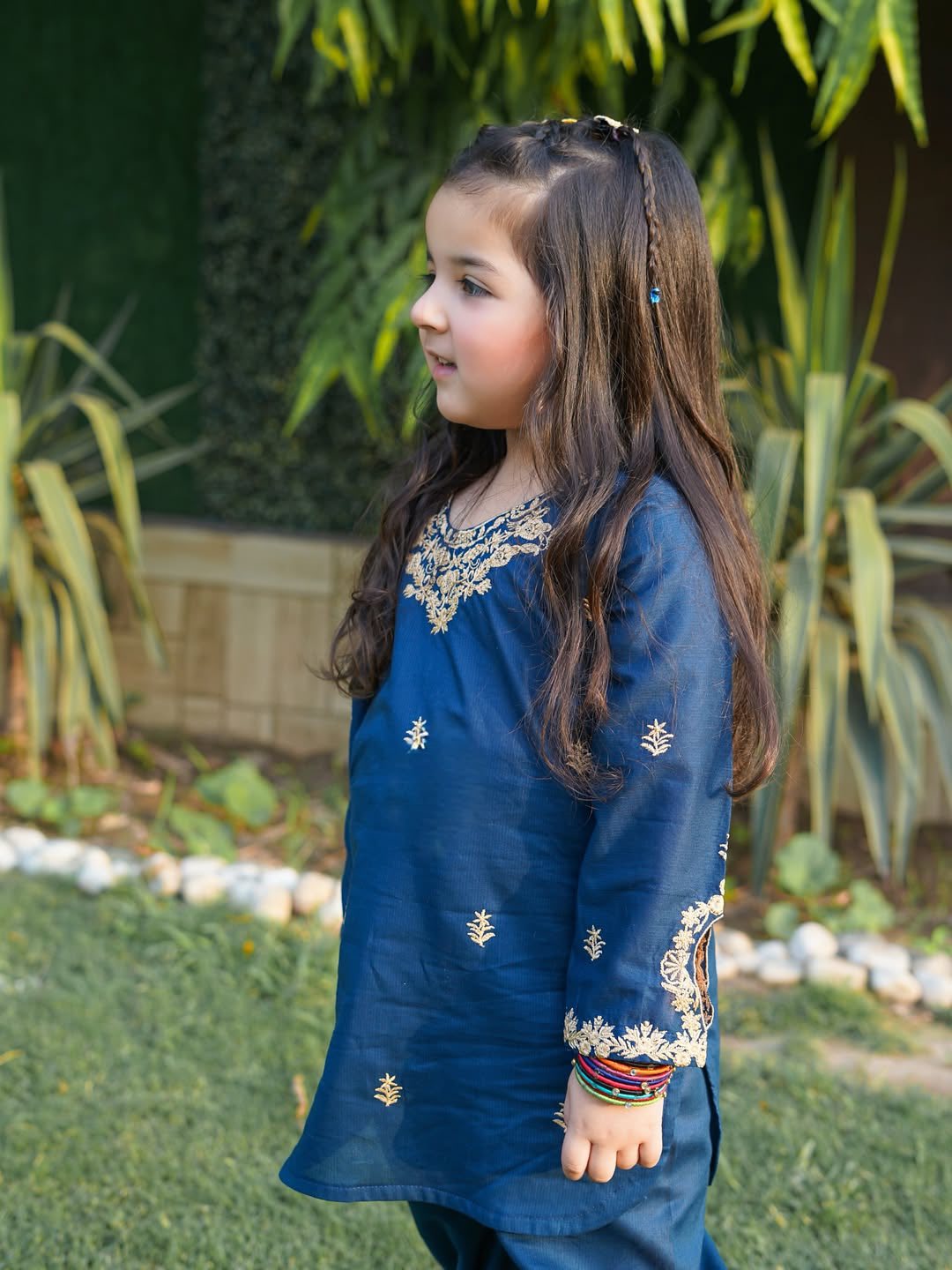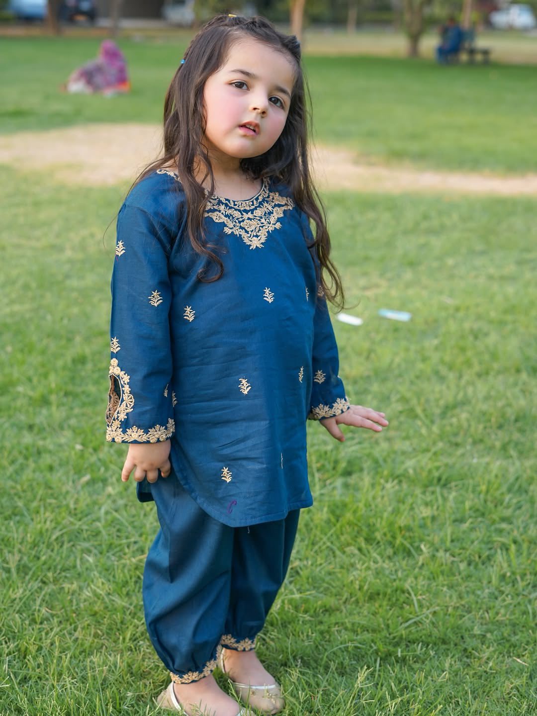 Crafted with premium soft fabric for all-day comfort and adorned with exquisite gold embroidery, this outfit is designed for the girl who loves to twirl!